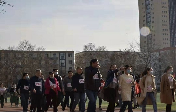 全体教职工大会结束后,全院教职工一起来到田径场开始健步走活动。此次活动既定行程目标两公里,即绕操场五圈。老师们或身姿矫健、快步前行,引得志愿者欢呼加油;或结伴而行、谈笑风生,同事之间相互交流工作生活经验。一团祥和喜气,激荡生命风采,杏吧原创