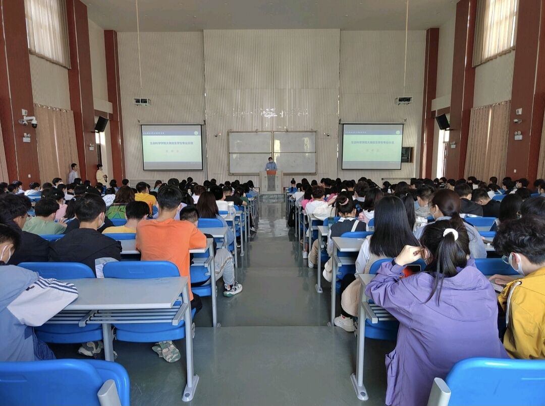 宣讲期间,邵毅贞就生物科学、生物技术和生物工程三个专业及其相关领域为同学们作详细说明,要求同学们严格遵循“以自愿申请为基础,当前学分绩点为基准”的专业分流原则,选择适合个人的专业。王小纯从专业方向、课程体系、就业前景等方面对生物技术专业进行深度解析,使同学们对该专业在农、林、牧、渔业等方面的应用有了进一步了解。袁志良则着重就生物科学和生物技术专业的差异向同学们进行讲解。他表示,无论最终选择哪个专业,只要踏实努力,就一定会学有所成。在互动交流环节,21级同学踊跃提问,在场老师结合自身经验,为同学们答疑解惑。最后,张琨对本次大会作出总结,希望同学们理性对待专业分流,结合个人兴趣和特长,认真选择专业方向,树立远大目标并为之不断努力。