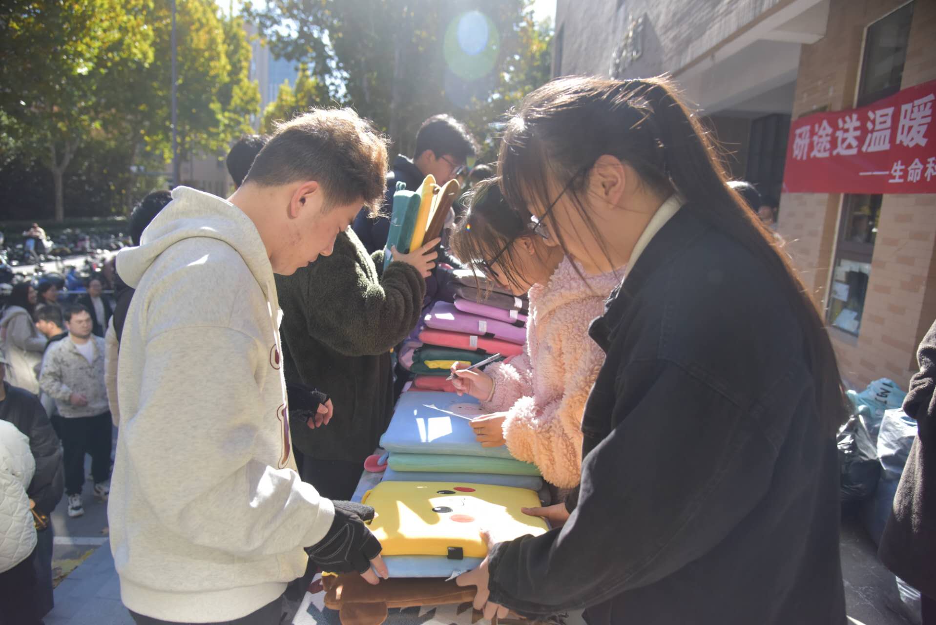 活动伊始,陈明明向考研同学表示慰问并送达冬日祝福,她肯定同学们备战以来的艰辛付出,并鼓励同学们能够坚定前行、稳定发挥、一战成硕。随后,杏吧原创 领导老师一起为同学们送上学院精心准备的棉被、暖手抱枕、坐垫、台灯,希望能够为大家驱赶严寒,提供精神动力。领取物资后,同学们也纷纷表示将不负学院关怀,全力以赴,不留青春遗憾。