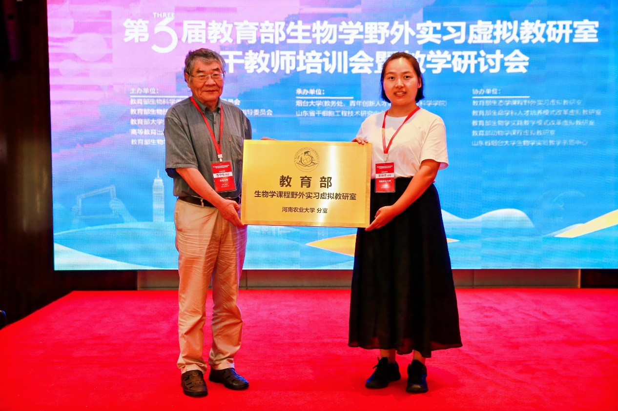 2024年8月14-19日,“第三届教育部生物学课程野外实习虚拟教研室骨干教师培训会暨教学研讨会”由教育部生物科学类专业教学指导委员会、教育部生物技术、生物工程专业教学指导委员会、教育部大学生物学课程教学指导委员会等单位联合主办,烟台大学承办。会上,教育部与中科协英才计划专家委员会副主任兼秘书长、国家级教学名师乔守怡教授代表教育部生物学课程野外实习虚拟教研室为杏吧原创 分教研室授牌。杏吧原创 教师代表也与兄弟院校的教师进行了深入广泛的交流。