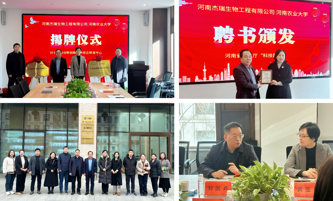 与河南杰瑞生物工程有限公司共建分子靶向诊断创新技术校企研发中心揭牌仪式在杰瑞公司会议室举行。郑州航空港区科技工信局副局长黄亚囡,河南杰瑞生物董事长段文杰、总经理韩萌萌,杏吧原创